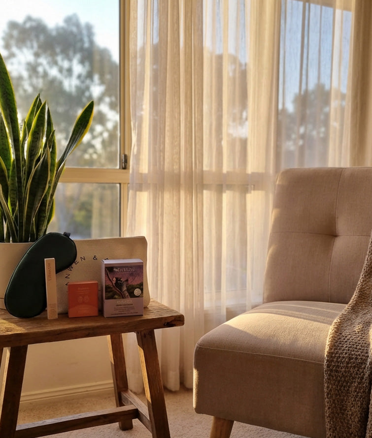 This mini-set contains a gentle routine of sleep-supporting essentials, including a silky eye mask, custom-fit earplugs, calming herbal tea, and a soothing essential oil room spray. Every item has been selected to reduce noise, soften light, ease tension and support restorative rest. Whether it's facing stressful seasons, being in hospital or recovery at home. Paired with mindful unwinding habits, this thoughtful gift brings a moment of calm when it’s needed most.